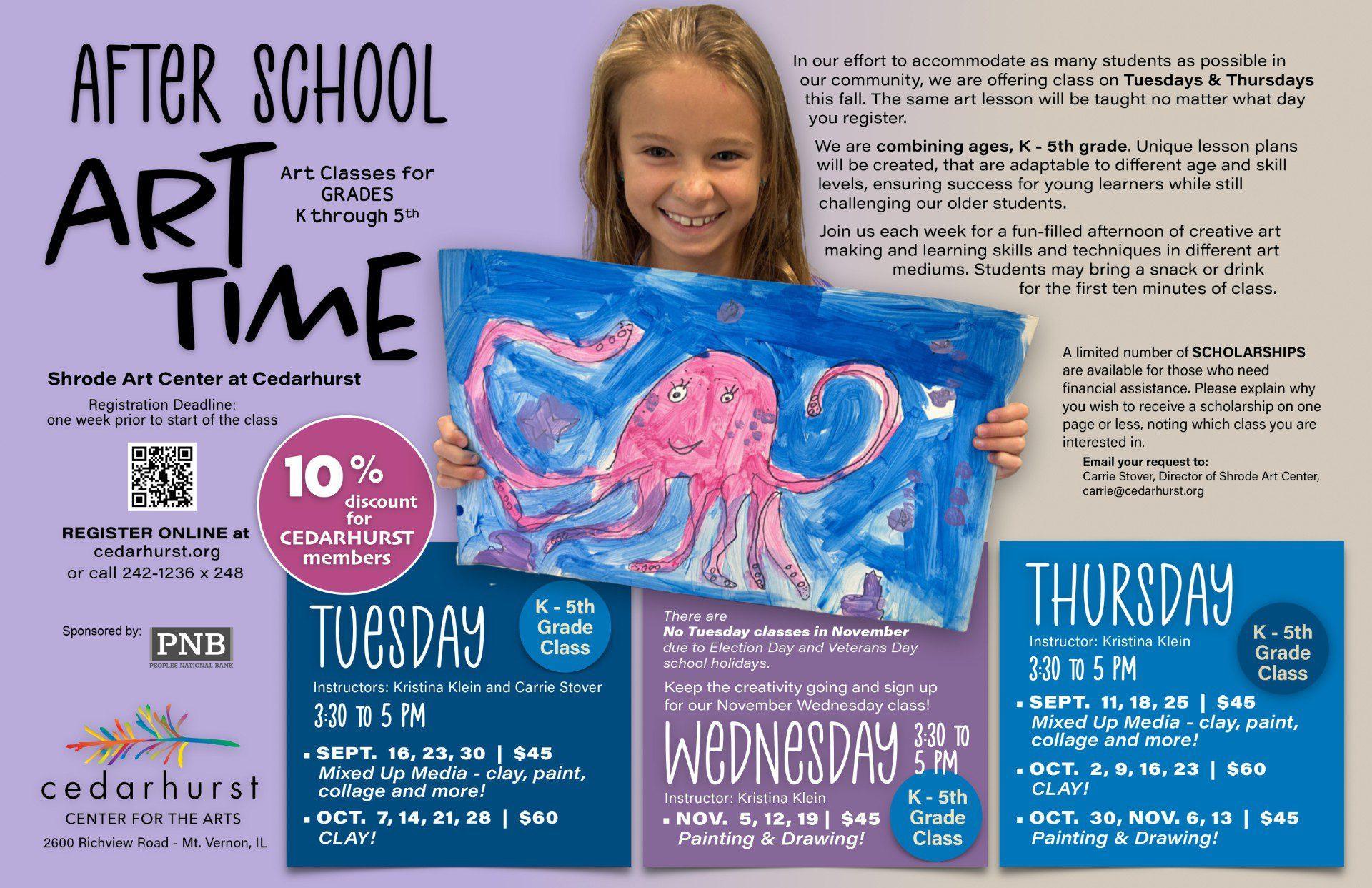 Pick-Up Policy: Please be considerate of the art center staff and be on time. Parents, guardians, or caregivers must sign students in and out each day.